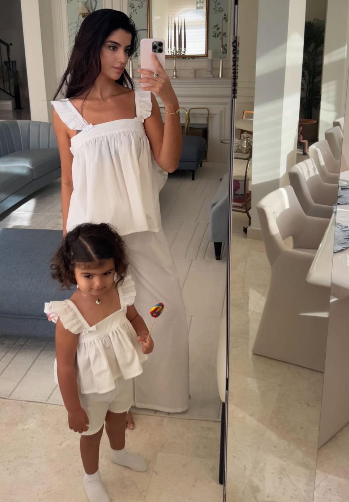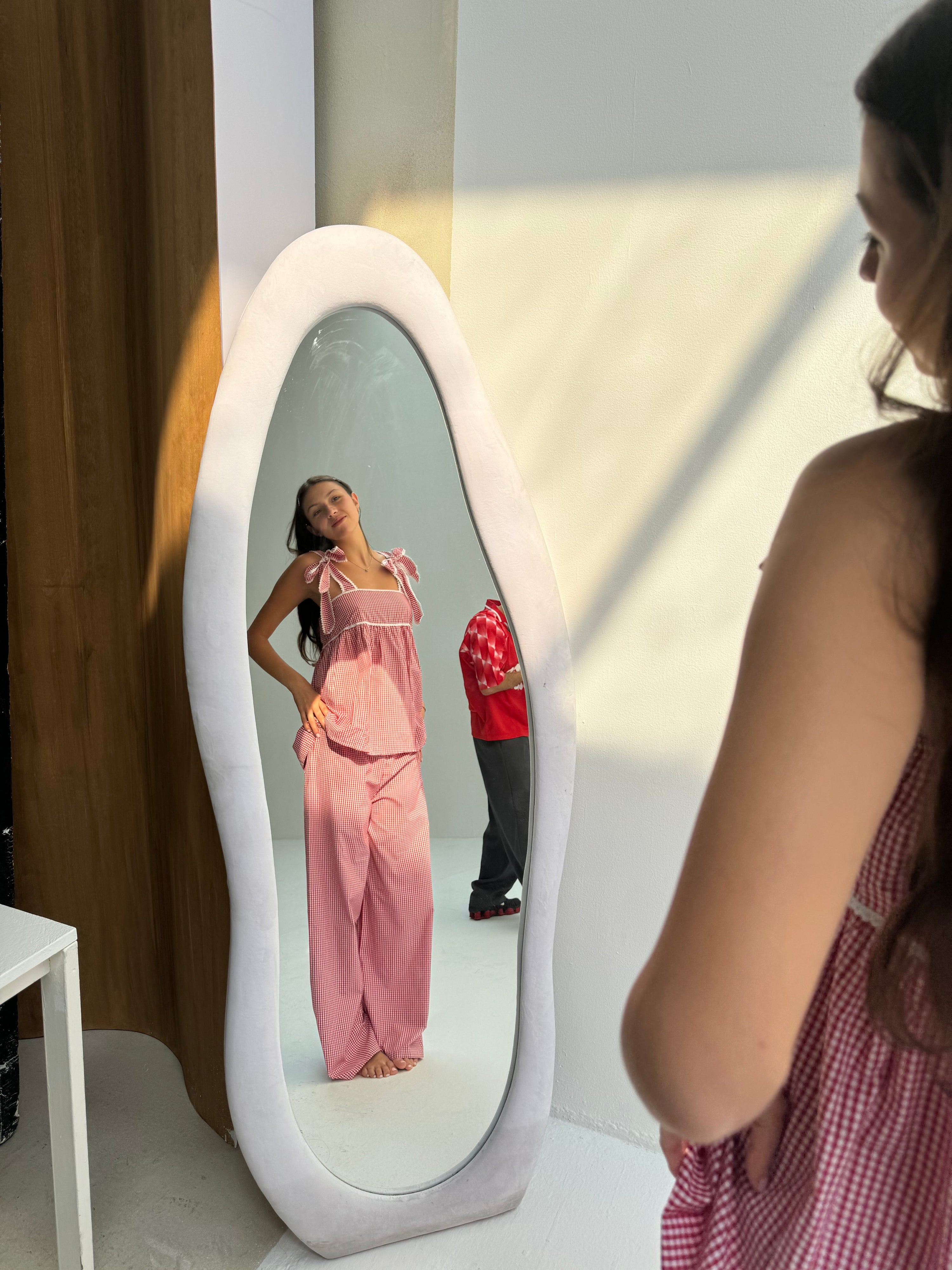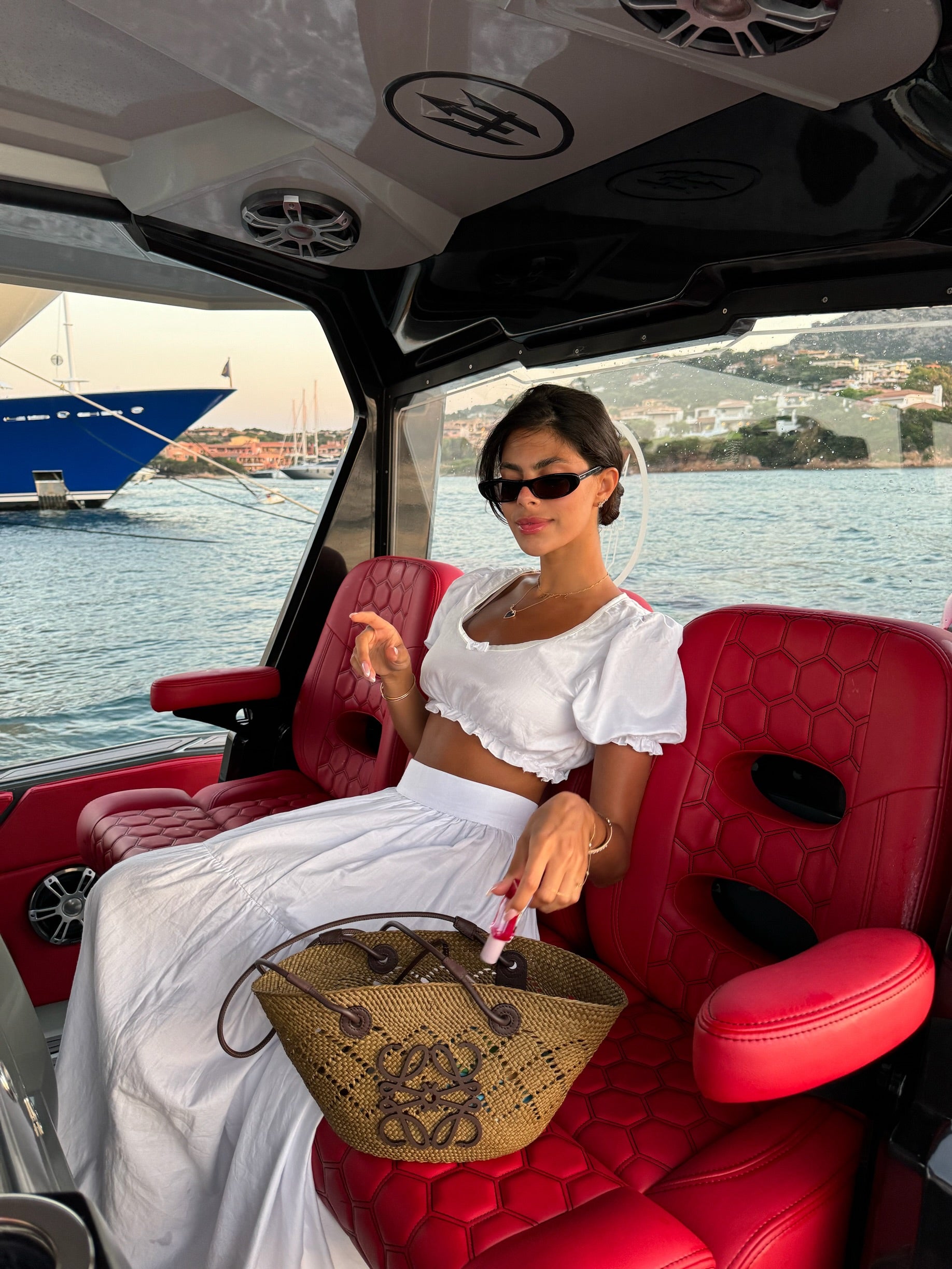 Playful bubble mini skirt paired with a matching cropped shirt, finished with the signature logo detail Matching scrunchie with embroidered...