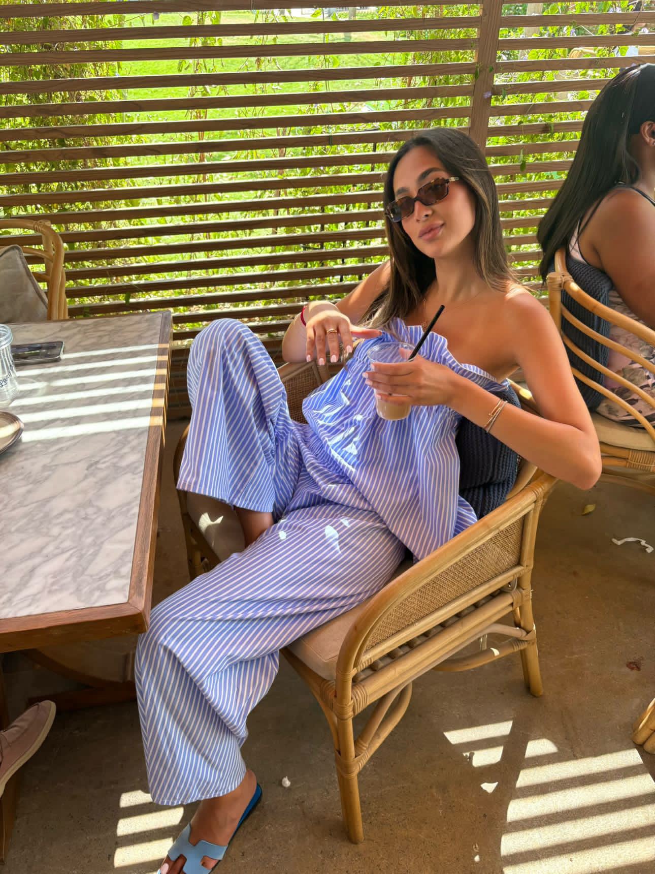 Crisp striped poplin pants finished with a bold, thick drawstring for an effortlessly relaxed fit